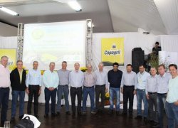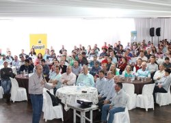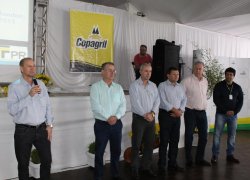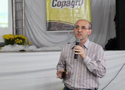 Depois, o engenheiro agrônomo Edimar Oswald, da Copagril, falou das pesquisas realizadas na Estação Experimental da cooperativa e apresentou o rendimento de cultivares de soja e híbridos de milho implantadas na Estação Experimental.