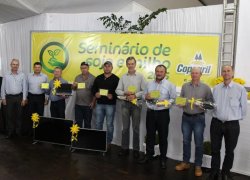 No último sábado (13), a Copagril, por meio do setor agronômico, realizou o Seminário de soja e milho 2015, no Clube Concórdia, em Marechal Cândido Rondon. O evento reuniu 600 pessoas, e contou com a presença da diretoria executiva da Copagril, associados e autoridades da região. O objetivo do evento foi repassar informações sobre os avanços tecnológicos que proporcionem aumento de produtividade das culturas, contribuindo para melhoria da renda e da qualidade de vida dos associados, além de reconhecer os associados que alcançaram maior produtividade na última safra.