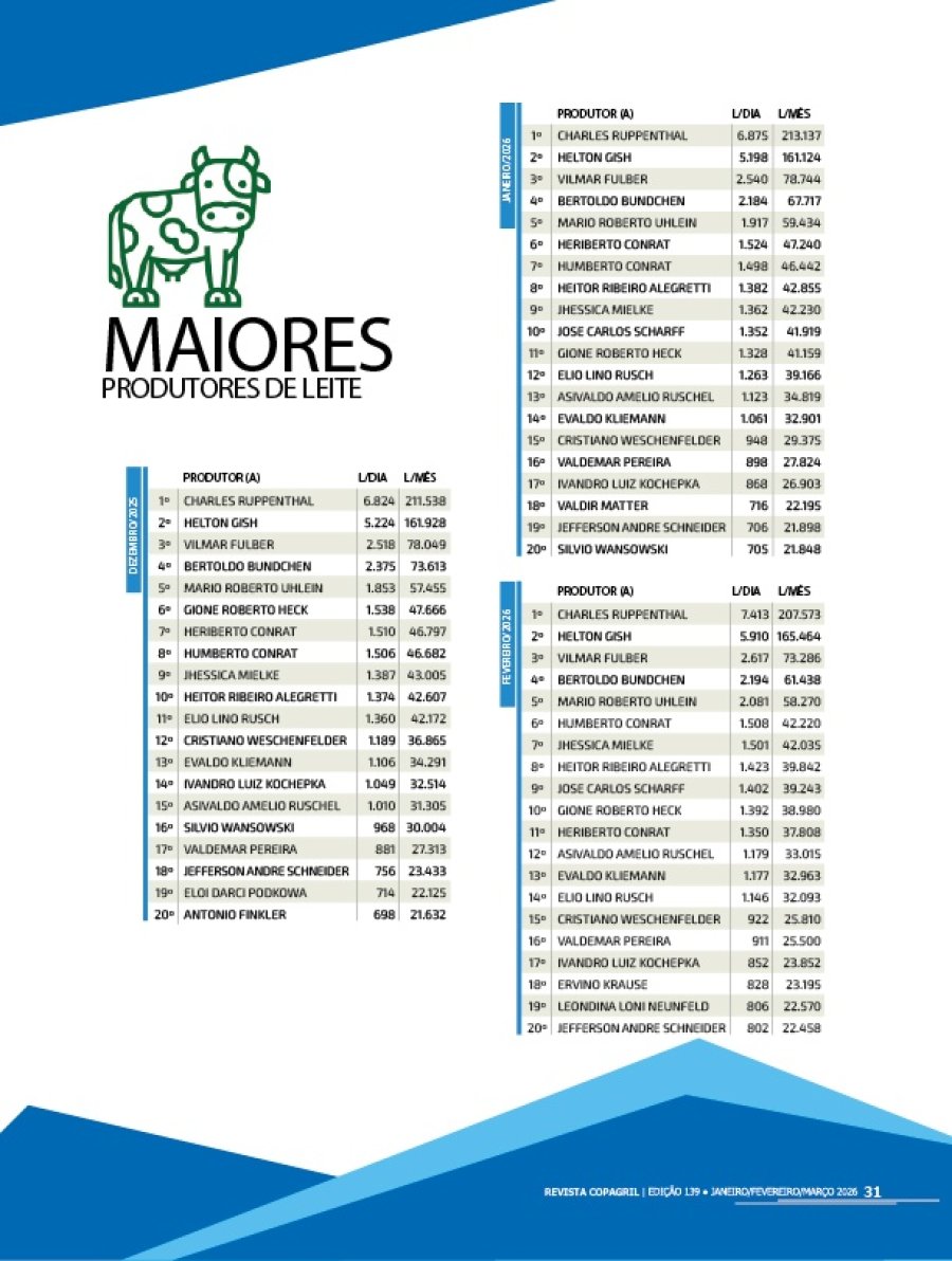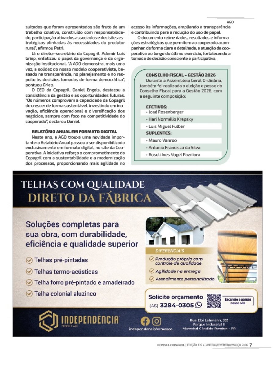 Copagril - Revista JANEIRO, FEVEREIRO E MARÇO DE 2026.