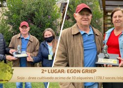 2º lugar – Egon Griep (Marechal Cândido Rondon) - 178,10 sacas por alqueire;