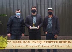1º lugar – Iago Henrique Copetti Herthal (Santa Helena) - 193,34 sacas por alqueire;