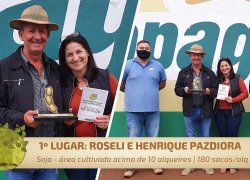 1º lugar – Roseli e Henrique Pazdiora (São Roque/Marechal Cândido Rondon) - 180,0 sacas por alqueire;