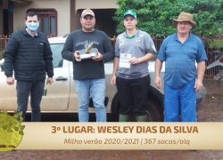 3º lugar – Wesley Dias Da Silva (Sub Sede/Santa Helena) – 367 sacas por alqueire