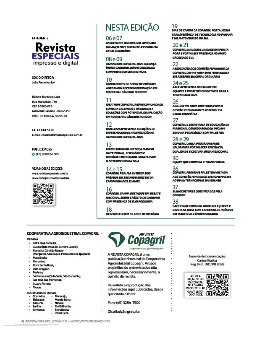 Copagril - Revista JANEIRO, FEVEREIRO E MARÇO DE 2026.